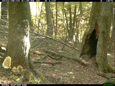 2010.8.4 6:20:09(10秒間隔で撮影) 樹洞内を登っていて見えない。 |