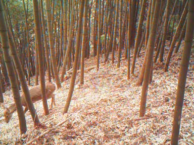 カメラはほぼ同じ標高の20mほど離れた場所に設置した。竹林の中心部に置いたカメラの写真。