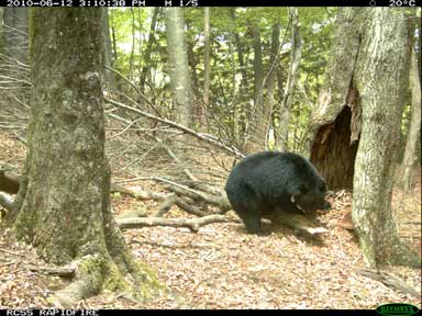 2010.6.20 15:54 翌日、クマが再び現れ歩いていく。前日のクマと同一かは不明であるが、同じ位の大きさである。 |