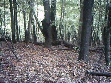 標高950mほどのスギの植林地に設置したカメラによる映像写真です。付近にはクマ剥ぎにあったスギがたくさんあります。動画はこちらからご覧ください。