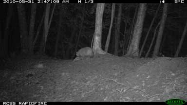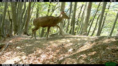 2010年4月18日から標高1300mほどの尾根筋に設置したカメラによって撮影された動物たちをご紹介します。この場所は、仕事道が尾根道をトラバースして横切っており、多くの動物が通過する場所です。今後継続して、この場所で定点撮影されたヒト以外の動物を全てご紹介していきますのでご覧ください。