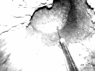 巣穴の中の様子(11月3日撮影) クロスズメバチの巣の外被だけで棚は残っていない。 |