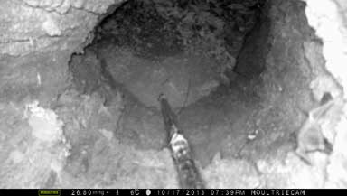 2013.10.1 22:02 ヤマネが樹洞内のすき間を探る。動画はその8 |